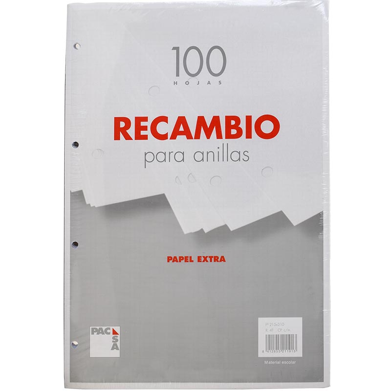 Recambio 100 hojas Cuadriculado para Anillas (A4 +)
