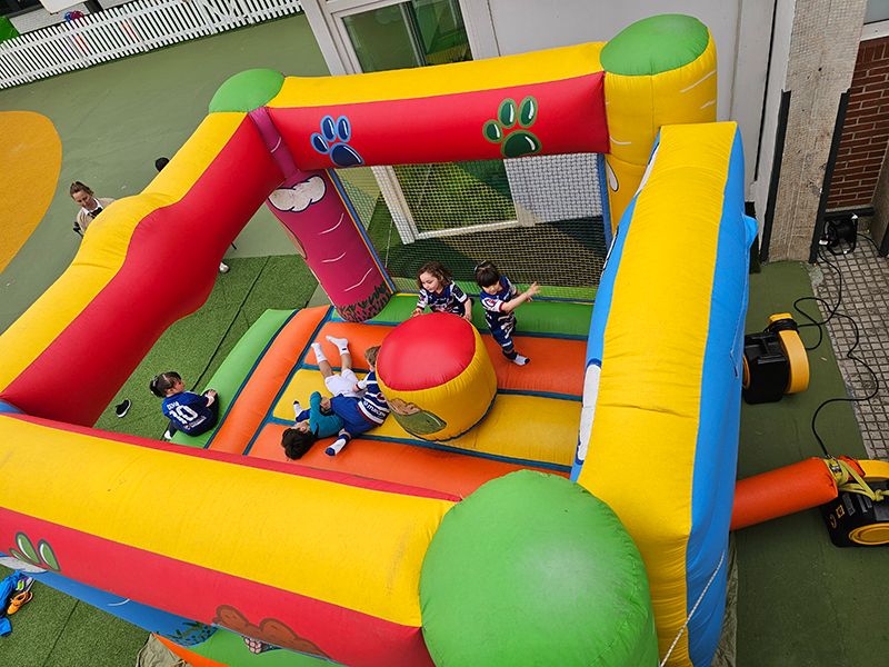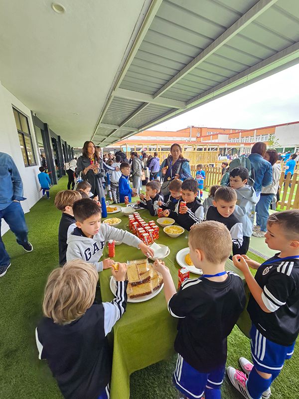 Además del polideportivo, el segundo escenario del torneo fue el patio de Educación Infantil, donde los deportistas pudieron quemar energías saltando en un hinchable instalado para la ocasión. Tras los partidos, tuvo lugar la entrega de medallas para todos los participantes, y un pinchoteo de confraternización para los 'peques' y sus familias. Un broche de oro para una mañana de domingo inolvidable.