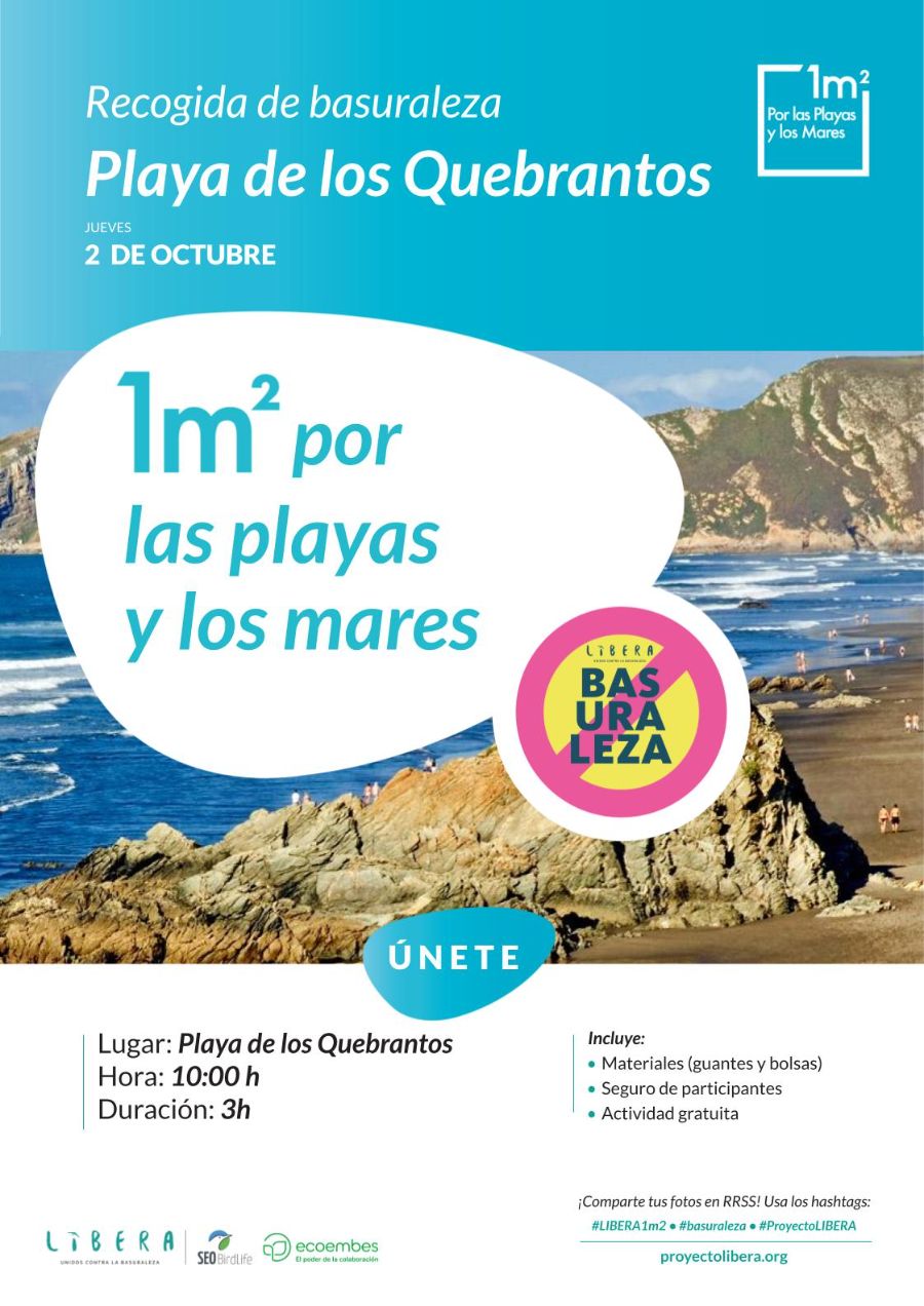 La playa de Los Quebrantos, en San Juan de la Arena, fue el lugar elegido por nuestros alumnos de 2º de ESO para participar en una nueva edición del proyecto LIBERA '1M2 por las playas y mares', una campaña promovida con motivo del Día Mundial de las Playas y que tiene como objetivo liberar los entornos marinos de residuos. En la mañana del jueves, 2 de octubre, nuestros jóvenes acudieron al arenal sotobarquense para contribuir a esta causa medioambiental y, al mismo tiempo, conocer las características de este entorno natural.